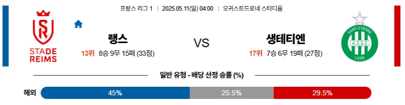 【프랑스 리게1】05월11일 랭스 vs 생테티엔 분석