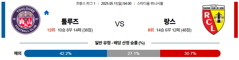 【프랑스 리게1】05월11일 툴루즈 vs 랑스 분석