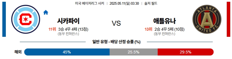 【미국 메이저리그 사커】05월11일 시카고 vs 애틀랜타 분석