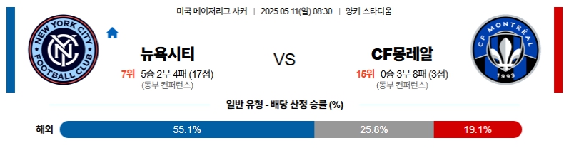 【미국 메이저리그 사커】05월11일 뉴욕시티 vs 몬트리올 분석