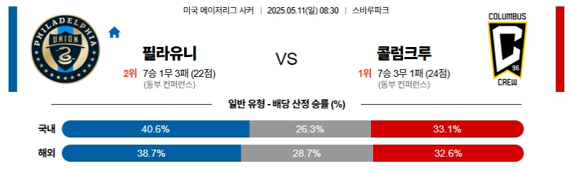 【미국 메이저리그 사커】05월11일 필라델피아 vs 콜럼버스 분석