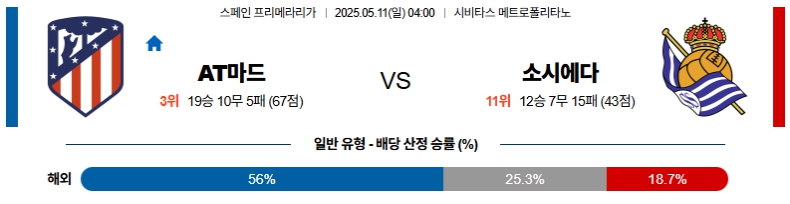 【스페인 프리메라리가】05월11일 AT마드리드 vs 소시에다드 분석