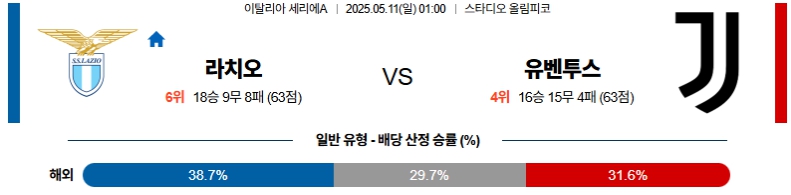 【이탈리아 세리아A】05월11일 라치오 vs 유벤투스 분석