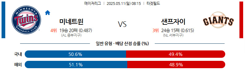 05월 11일 MLB 미네소타 샌프란시스코 분석