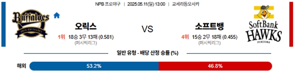 5월 11일 일본야구(NPB) 오릭스 VS 소프트뱅크 분석