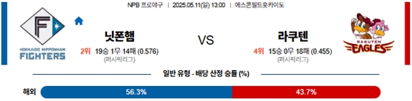 5월 11일 일본야구(NPB) 니혼햄 VS 라쿠텐 분석