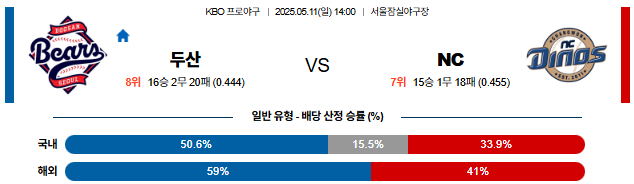 NC : 로건 앨런(1승 5패 4.01)이 시즌 2승에 도전한다 .5일 KT 원정에서 7이닝 무실점의 호투로 승리를 거둔 앨런은 역시 KT 상대로 강한 투수임을 증명해 보였다. 즉, 팀을 가린다는 이야기인데 두산 상대 첫 등판이라는 점이 변수다.
