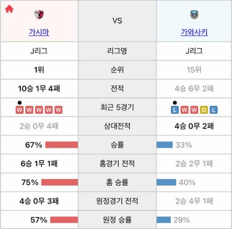 가와사키도 밀리진 않겠지만, 이번 판은 가시마 쪽 흐름이 더 탄탄해보여유.