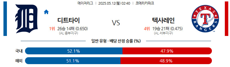 05월 12일 MLB 디트로이트 텍사스 분석