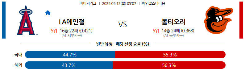 05월 12일 MLB LA에인절스 볼티모어 분석