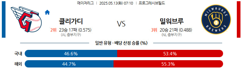 05월 13일 MLB 클리블랜드 밀워키 분석