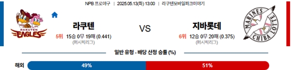 5월 13일 일본야구(NPB) 라쿠텐 VS 지바롯데 분석
