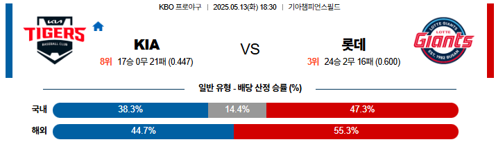 05월 13일 KBO KIA 롯데 KBO분석