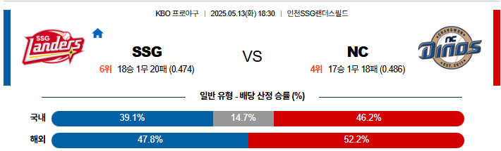 양 팀 모두 최근 타격은 꽤 좋은 편이다. 특히 SSG는 홈에서 페이스가 올라왔다는 점이 중요 포인트. 그렇지만 문승원은 최근 투구가 흔들리는 반면 라일리는 야간 경기의 스페셜리스트 그 자체다. 게다가 NC의 타격도 좋은 편. 불펜이 변수이긴 하지만 그 전에 승부가 날 것이다. 선발에서 앞선 NC가 승리를 가져갈 것이다.