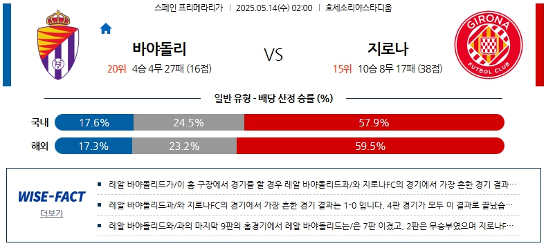 05월 14일 라리가 레알 바야돌리드 지로나 FC 해외축구분석
