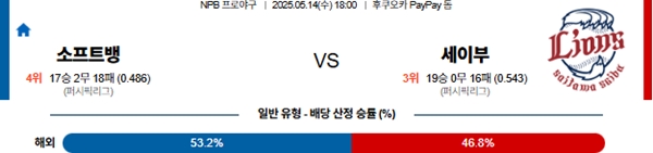 5월 14일 일본야구(NPB) 소프트뱅크 VS 세이부 분석