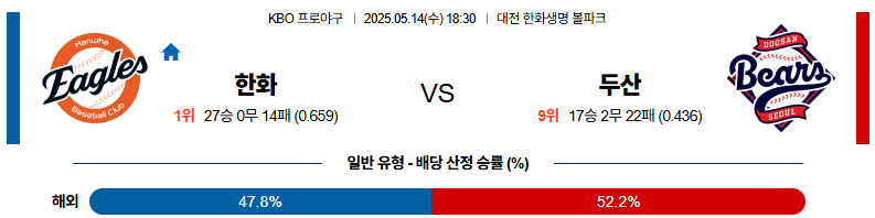 05월 14일 KBO 한화 두산 KBO분석