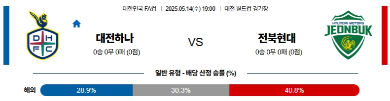 【대한민국 FA컵】05월14일 대전 vs 전북 분석
