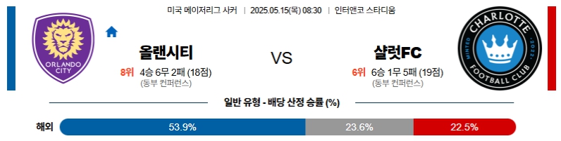 【미국 메이저리그 사커】05월15일 올랜도시티 vs 샬럿 분석