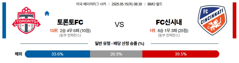 【미국 메이저리그 사커】05월15일 토론토 vs 신시내티 분석