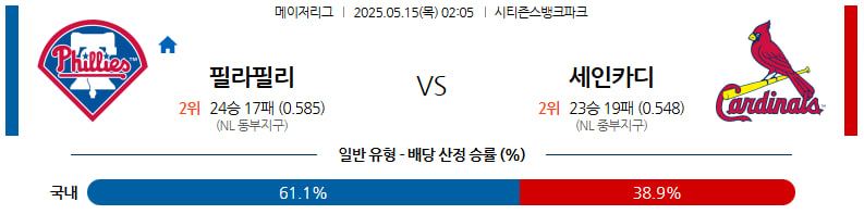 05월 15일 MLB 필라델피아 세인트루이스 분석