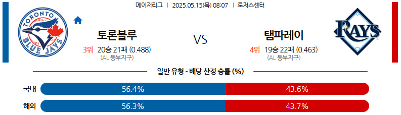 05월 15일 MLB 토론토 탬파베이 분석