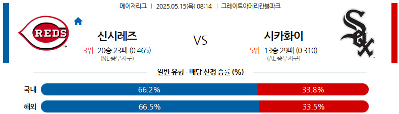 05월 15일 MLB 신시내티 시카고W 분석
