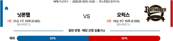 5월 15일 일본야구(NPB) 니혼햄 VS 오릭스 분석