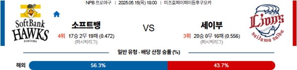 5월 15일 일본야구(NPB) 소프트뱅크 VS 세이부 분석