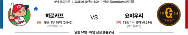 5월 15일 일본야구(NPB) 히로시마 VS 요미우리 분석
