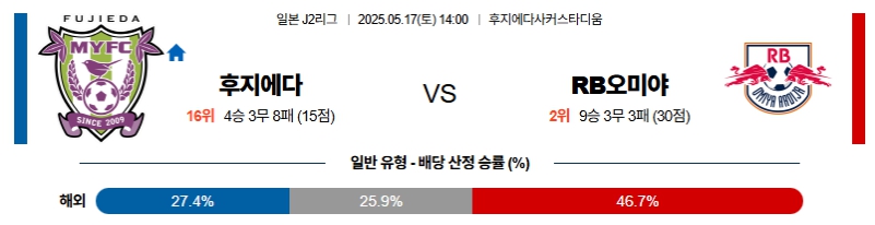 【일본J2리그】05월17일 후지에다 vs 오미야 분석