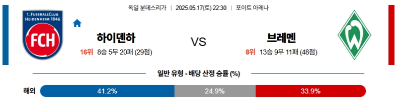【독일 분데스리가】05월17일 하이덴하임 vs 베르더브레멘