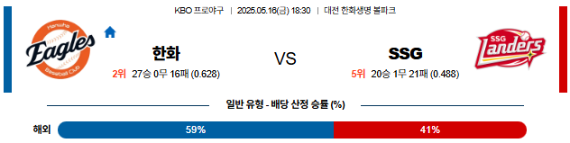 05월 16일 KBO 한화 SSG KBO분석