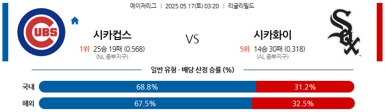 05월 17일 MLB 시카고C 시카고W MLB분석