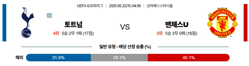 【UEFA 유로파리그 결승전】05월22일 토트넘 훗스퍼 vs 맨체스터 Utd 분석