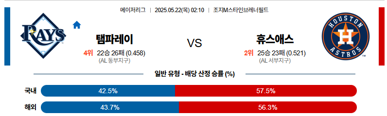05월 22일 MLB 템파베이 휴스턴 MLB분석