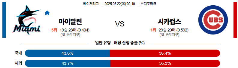 05월 22일 MLB 마이애미 시카고컵스 MLB분석