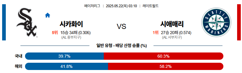 05월 22일 MLB 화이트삭스 시애틀 MLB분석