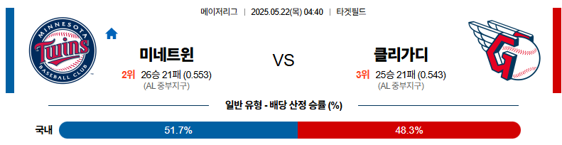 05월 22일 MLB 미네소타 클리블랜드 MLB분석