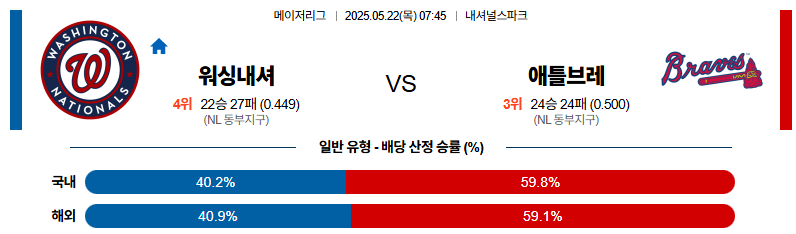 05월 22일 MLB 워싱턴 애틀랜타 MLB분석