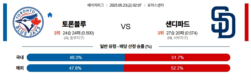 5월 23일 MLB 토론토 VS 샌디에이고 분석