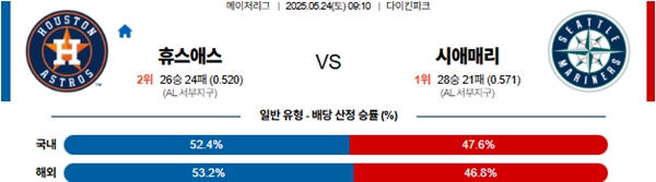 5월 24일 MLB 휴스턴 VS 시애틀 분석