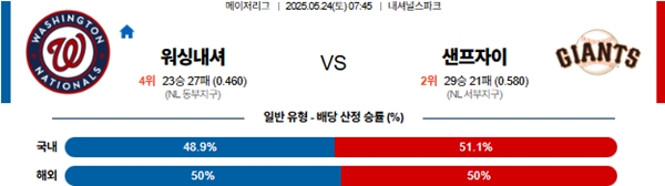 5월 24일 MLB 워싱턴 VS 샌프란시스코 분석