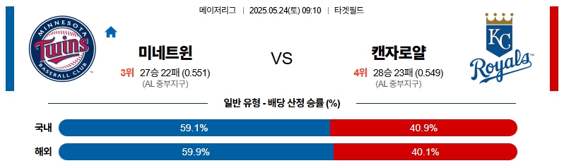 5월 24일 MLB 미네소타 VS 캔자스시티 분석