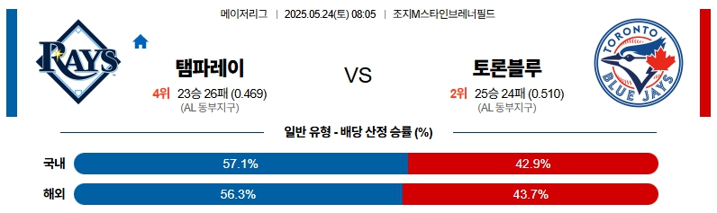 5월 24일 MLB 템파베이 VS 토론토 분석