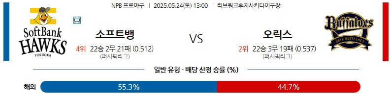 05월 24일 NPB 소프트뱅크 오릭스 분석