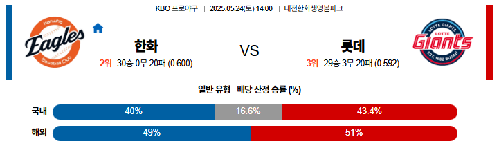이번 경기가 낮 경기임을 고려한다면 류현진과 데이비슨 모두 투구 내용에 아쉬움이 남을 가능성이 꽤 있는 편이다. 즉, 이번 경기는 후반전이 중요해질 가능성이 매우 높은 편. 하지만 전날 경기에서도 드러났듯이 불펜을 흔들기 위한 막판 3이닝의 경기력은 롯데가 더 나은 편이고 결국 이 점이 승부를 가를 것이다. 후반에 강한 롯데가 신승을 가져갈 것이다.