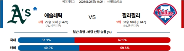 5월 25일 MLB 애슬레틱 VS 필라델피아 분석