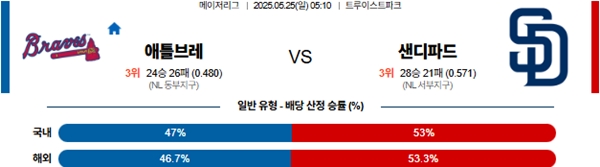 5월 25일 MLB 애틀랜타 VS 샌디에이고 분석
