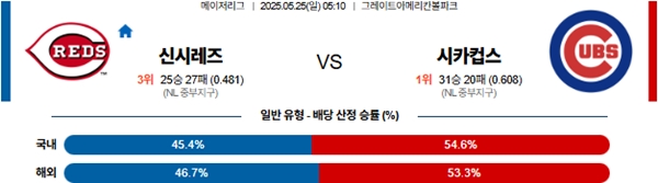 5월 25일 MLB 신시내티 VS 시카고컵스 분석